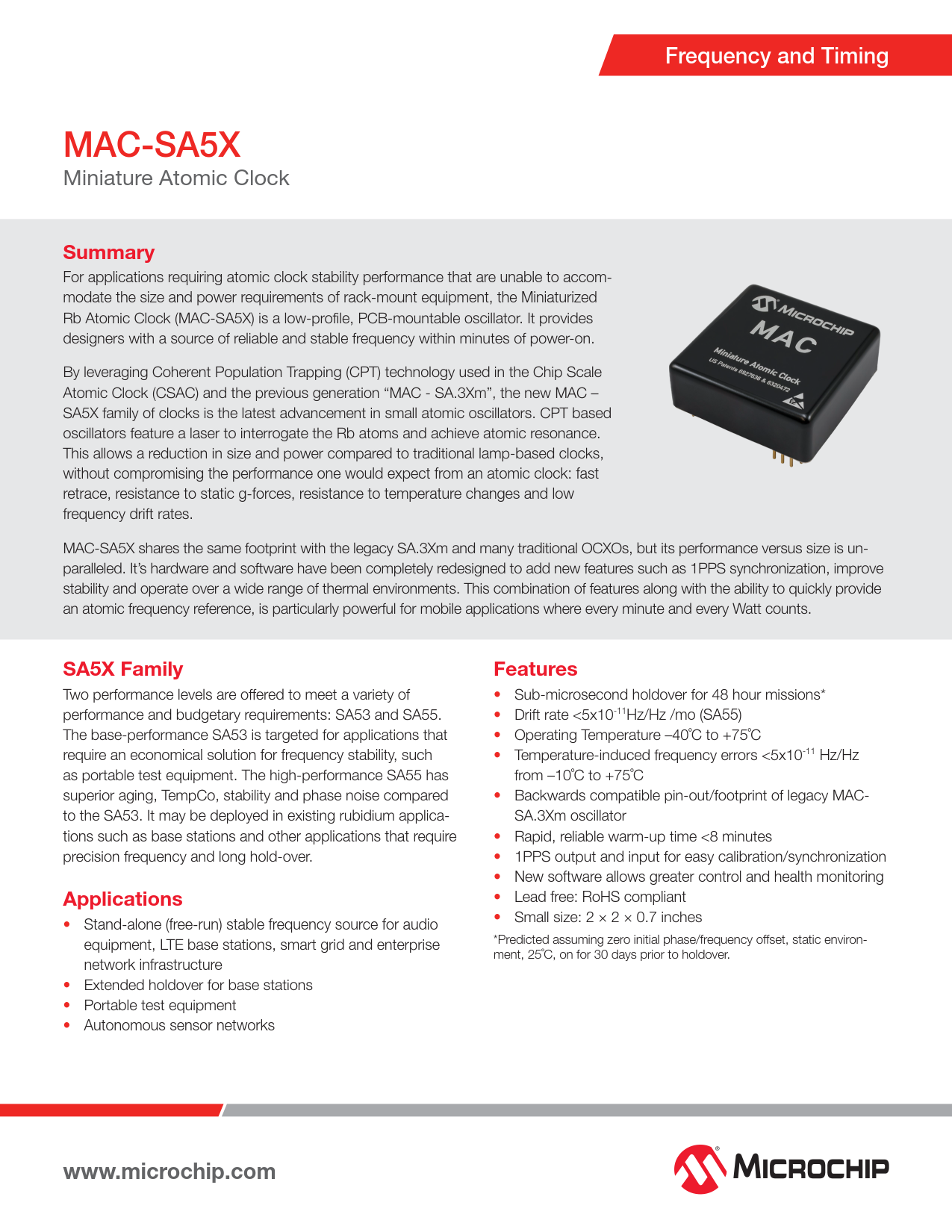 MAC-SA5X微型銣原子鐘可提供穩定的時間和頻率基準,并與基準時鐘(如GNSS衍生信號)保持高度同步。新產品同時具備低月度漂移率和短期穩定性,并且在溫度變化時仍能保持穩定,從而能夠在GNSS信號中斷期間保持較好的頻率和計時要求更長時間,也可用于無法安裝大型機架時鐘的應用場景。...