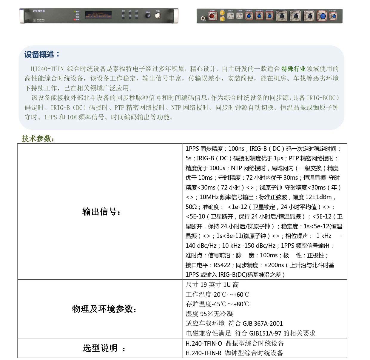 HJ240-TFIN 綜合時統設備是泰福特電子經過多年積累,精心設計、自主研發的一款適合特殊行業領域使用的高性能綜合時統設備,該設備工作穩定,輸出信號豐富,傳輸誤差小,安裝簡便,能在機房、車載等惡劣環境下持續工作,已在相關領域廣泛應用...
